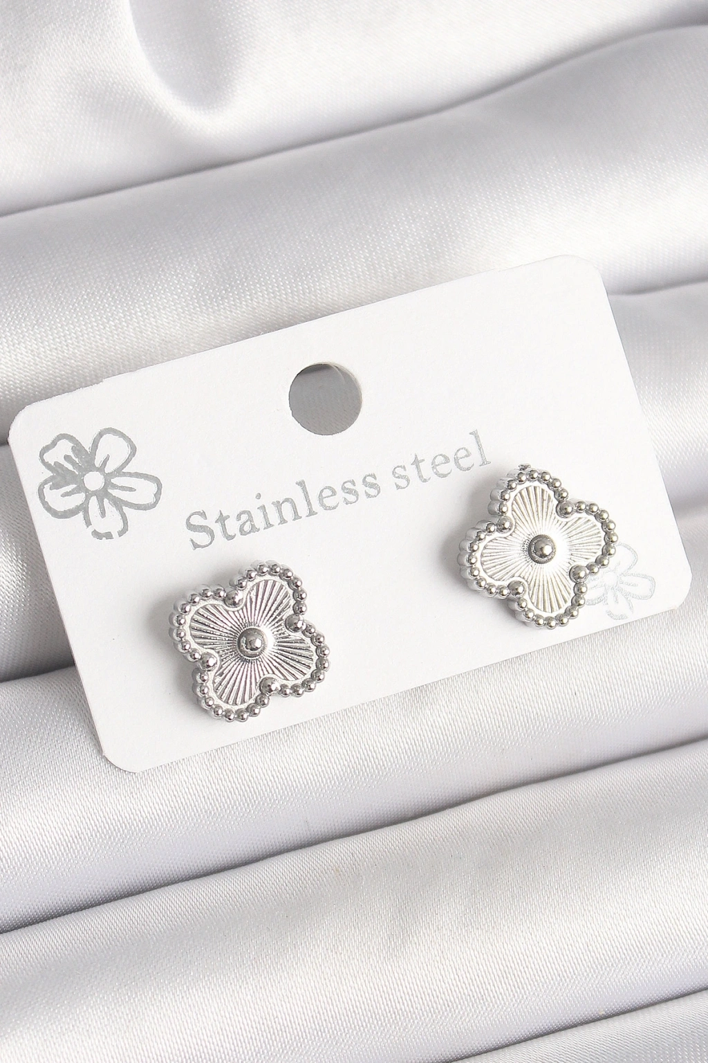 Gümüş Renk Yonca Model Pirinç Kadın Küpe