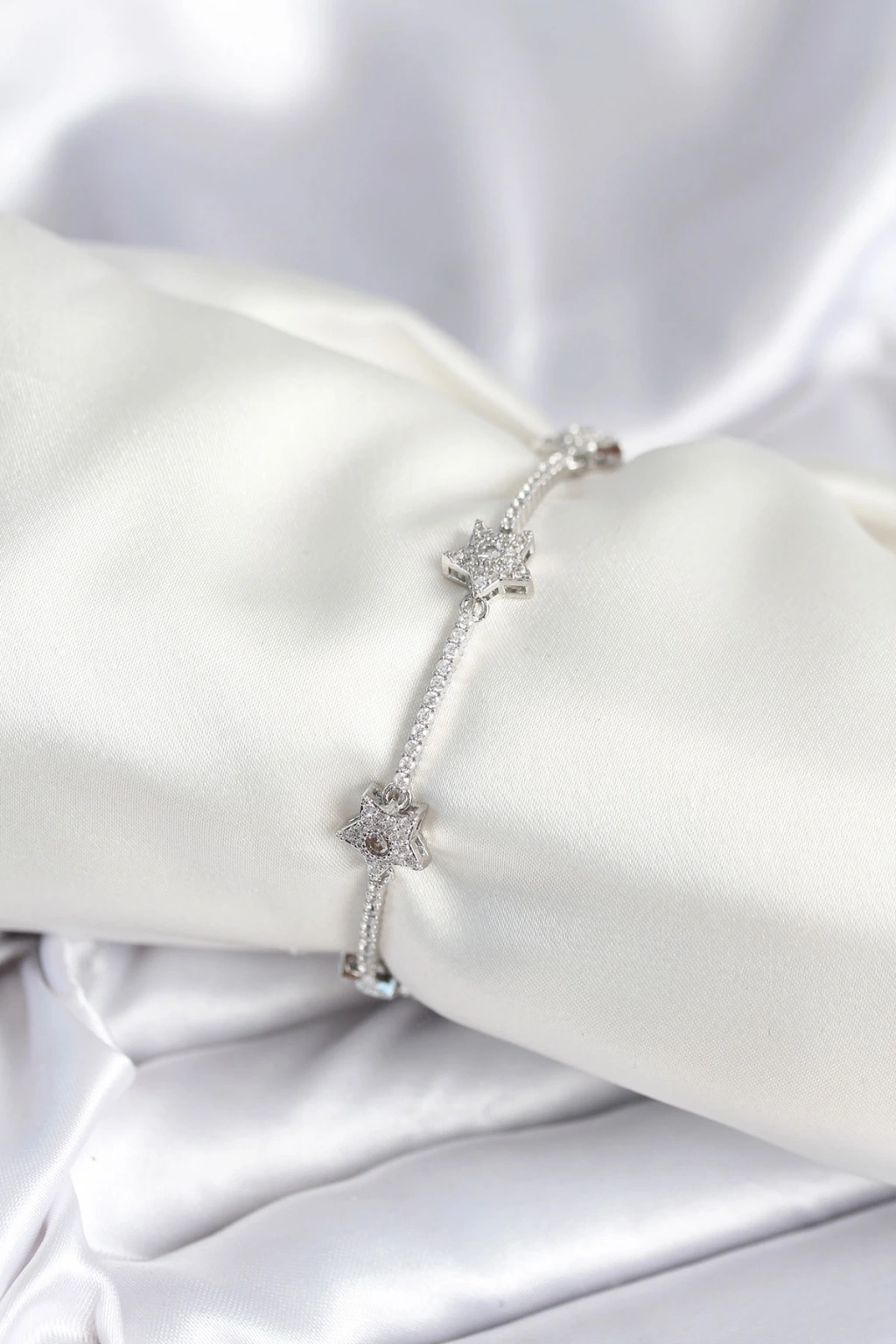 Pirinç Zirkon Taşlı Yıldız Model Gümüş Renk Charm Bileklik