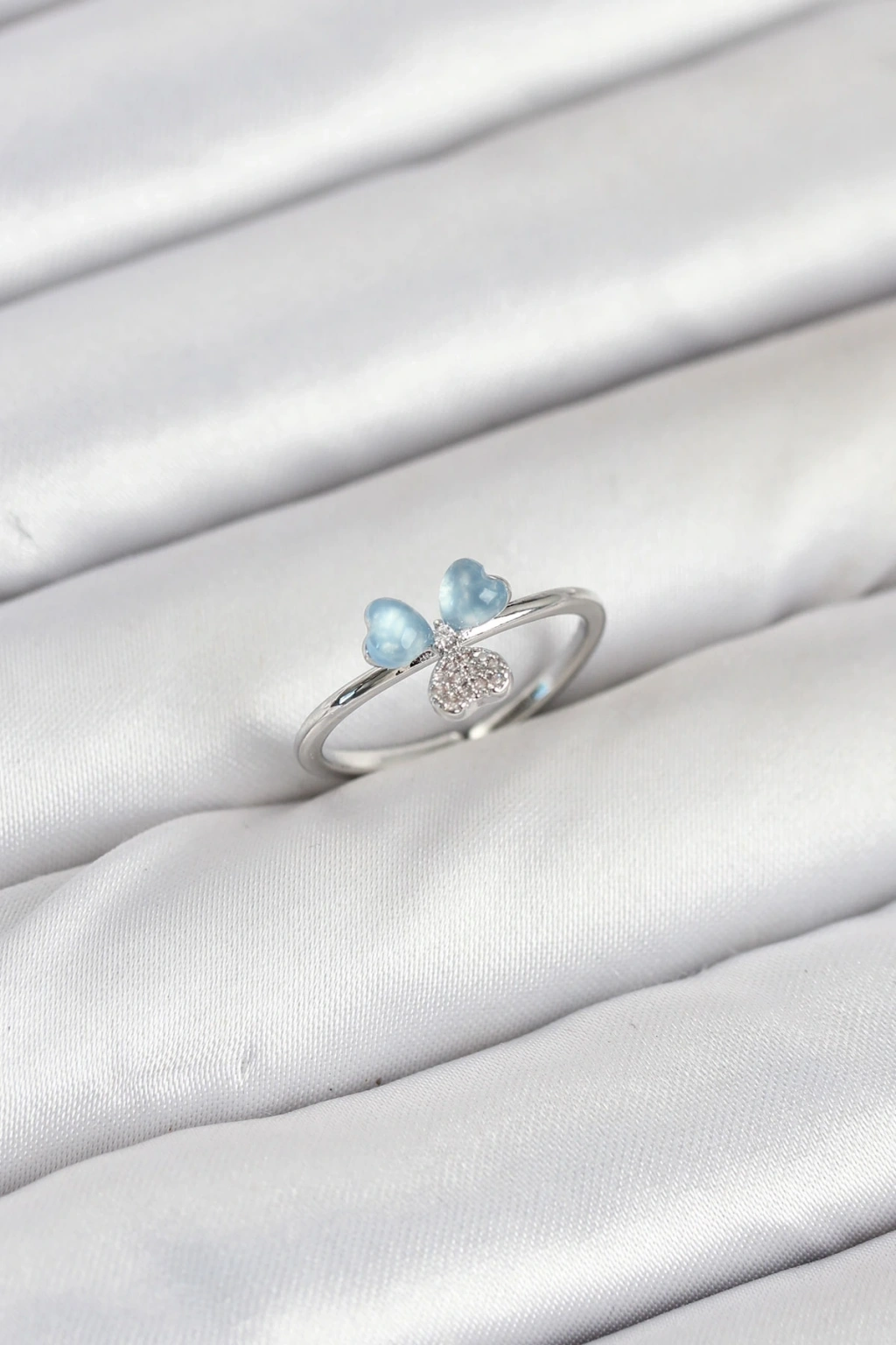 Zirkon Taşlı Gümüş Kaplama Kelebekli Kadın Yüzük