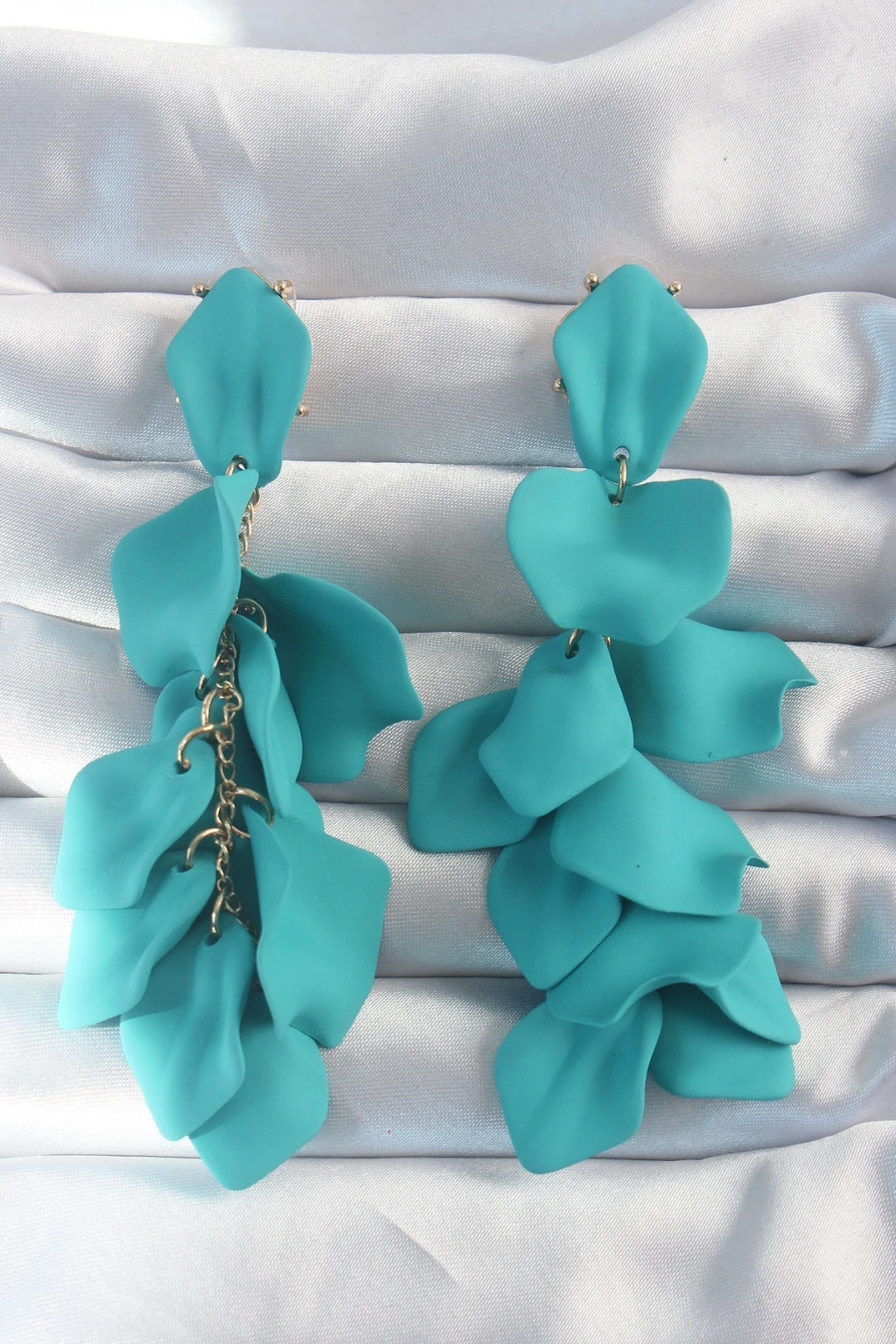 Pirinç Turkuaz Renk Sallantılı Yaprak Model Küpe