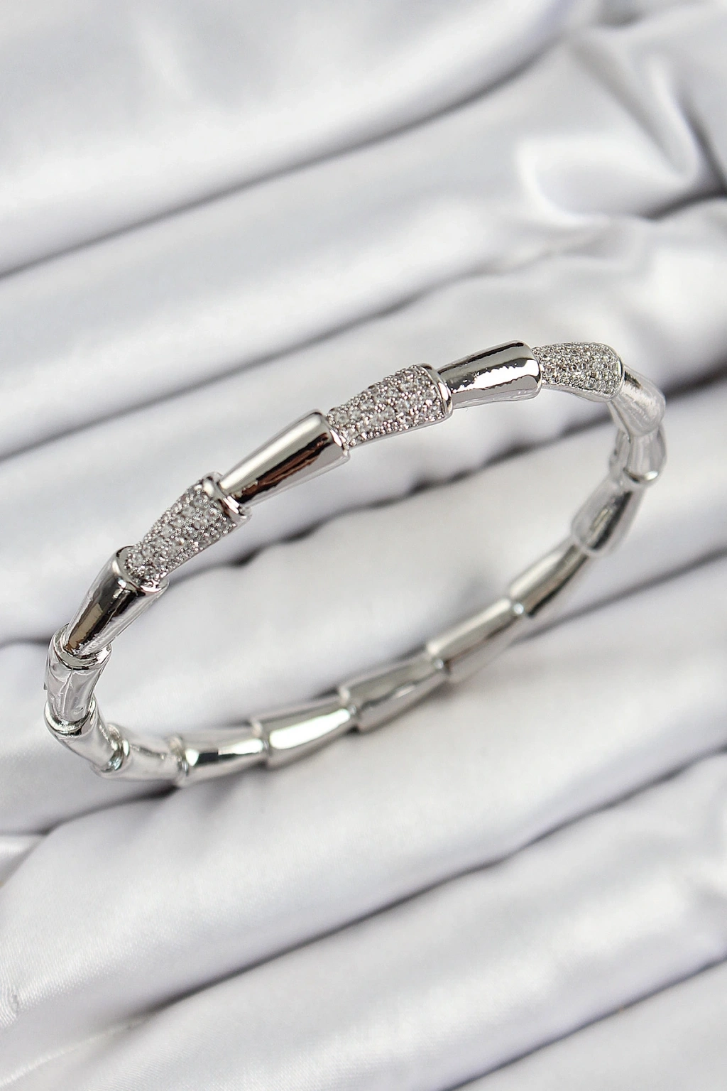 Pirinç Zirkon Taşlı Kemik Model Gümüş Renk Vip Kadın Bileklik