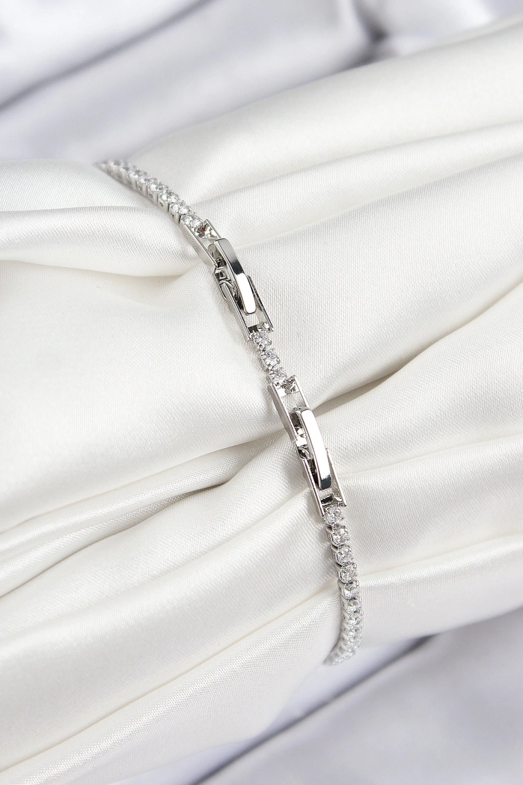 316L Çelik Zincir Gümüş Renk Zirkon Taşlı Yonca Beyaz Kadın Bileklik
