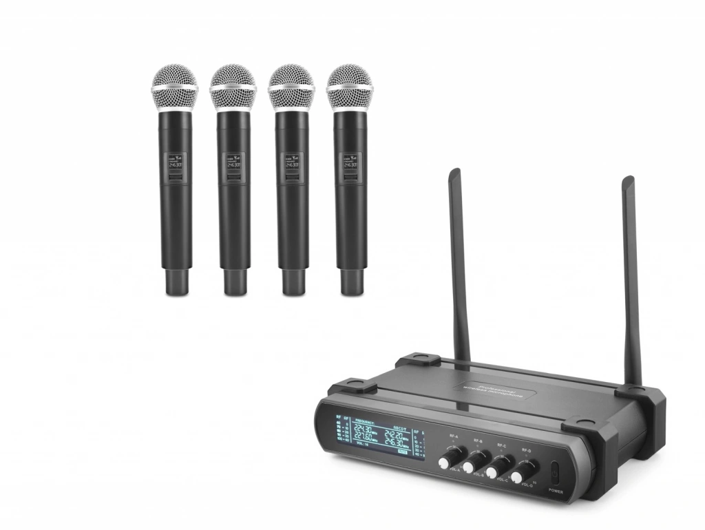 Teknik Özellikler Set İçeriği 4 Adet El Mikrofonu + 1 Adet Rack Tipi Alıcı Ünite İletim Teknolojisi Vhf Çok Kanallı Kablosuz İletişim Alıcı Kontrolleri 4 Bağımsız Kanal Ses Ayarı (vol-a, B, C, D) Gösterge Paneli Frekans Ve Sinyal İzleme Ekranı Renk / Malzeme Siyah / Profesyonel Metal Izgara Başlıklar Öne Çıkan Özellikler Dörtlü Eş Zamanlı Kullanım: Dört Farklı Kişinin Sesini Tek Bir Merkezi Üniteden Yönetme İmkanı. Bağımsız Kanal Yönetimi: Her Mikrofon İçin Ayrı Ses Seviyesi Belirleme Özelliği. Yüksek Sinyal Kararlılığı: Alıcı Üzerindeki Çift Anten İle Kopmalara Karşı Koruma. Dijital İzleme: Alıcı Panelindeki Lcd Ekran İle Frekans Kanallarını Takip Etme. Profesyonel Tasarım: Rack Tipi Monte Edilebilir Ana Ünite Ve Ergonomik El Mikrofonları. Geniş Kullanım Alanı: Paneller, Tiyatrolar Ve Kurumsal Toplantılar İçin İdeal Çözüm. Bilgi: Her Mikrofon, Ünite Üzerinde Önceden Tanımlanmış Farklı Frekanslarda Çalışır; Bu Sayede Sesler Birbirine Karışmaz. Arka Paneldeki Çıkışlar Aracılığıyla Ses Mikserlerine Kolayca Entegre Edilebilir.
