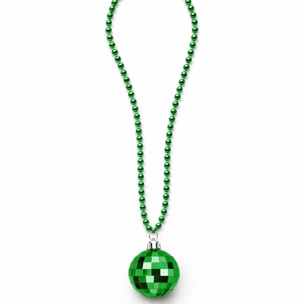 Kolye ucundaki disko topu tasarımı klasik dans pistlerinin enerjisini yansıtır ve retro tarz sevenler için eğlenceli bir görünüm oluşturur. Kostüm kombinlerini tamamlayan ve dikkat çeken bir parti aksesuarıdır.