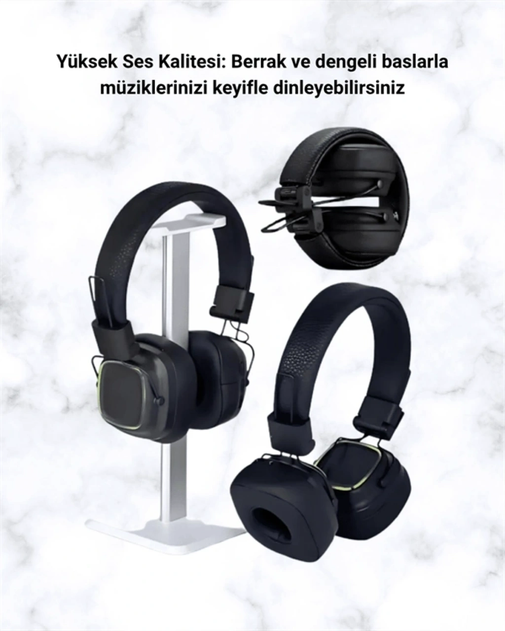 Bluetooth 5.0 Siyah Kablosuz Kulaklık 18 Saat Batarya Katlanabilir Tasarım