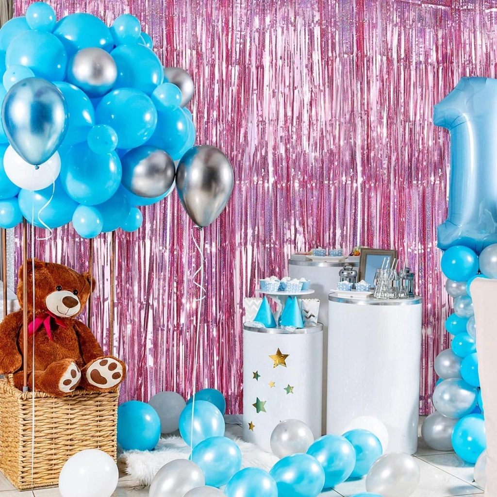 Rose Gold renk ekstra metalize parlak saçaklı arka fon perdesi ile özel günlerinize ve kutlamalarınıza göz kamaştırıcı bir ışıltı katın! İthal malzemeden üretilen bu perde, 1x2 metre boyutuyla her türlü dekorasyona uyum sağlar.