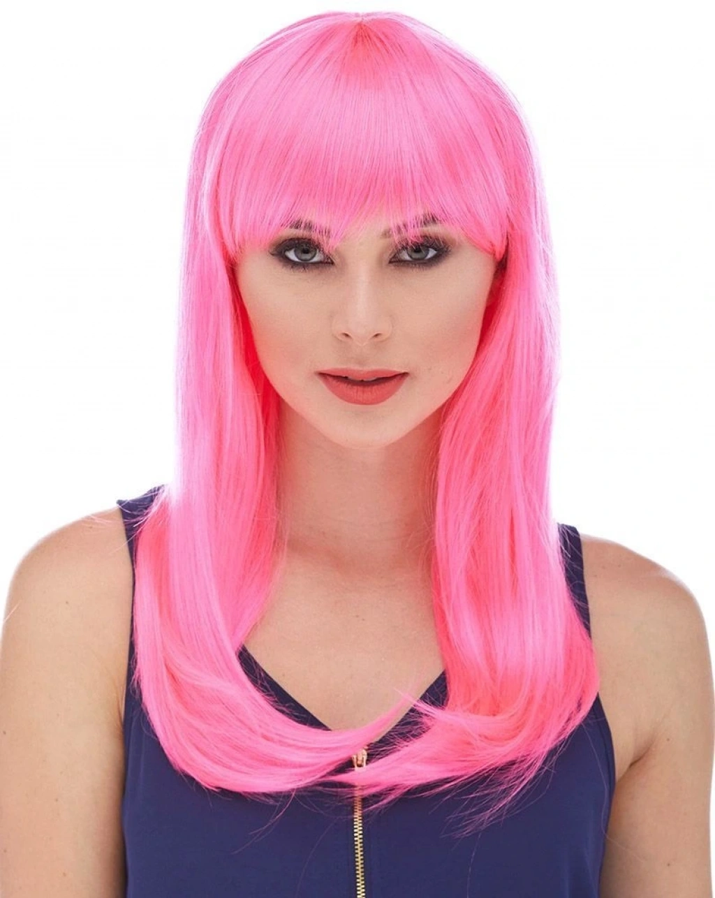 Şeker Pembesi Koyu Pembe Renk Uzun Düz Parti Peruğu (5047)