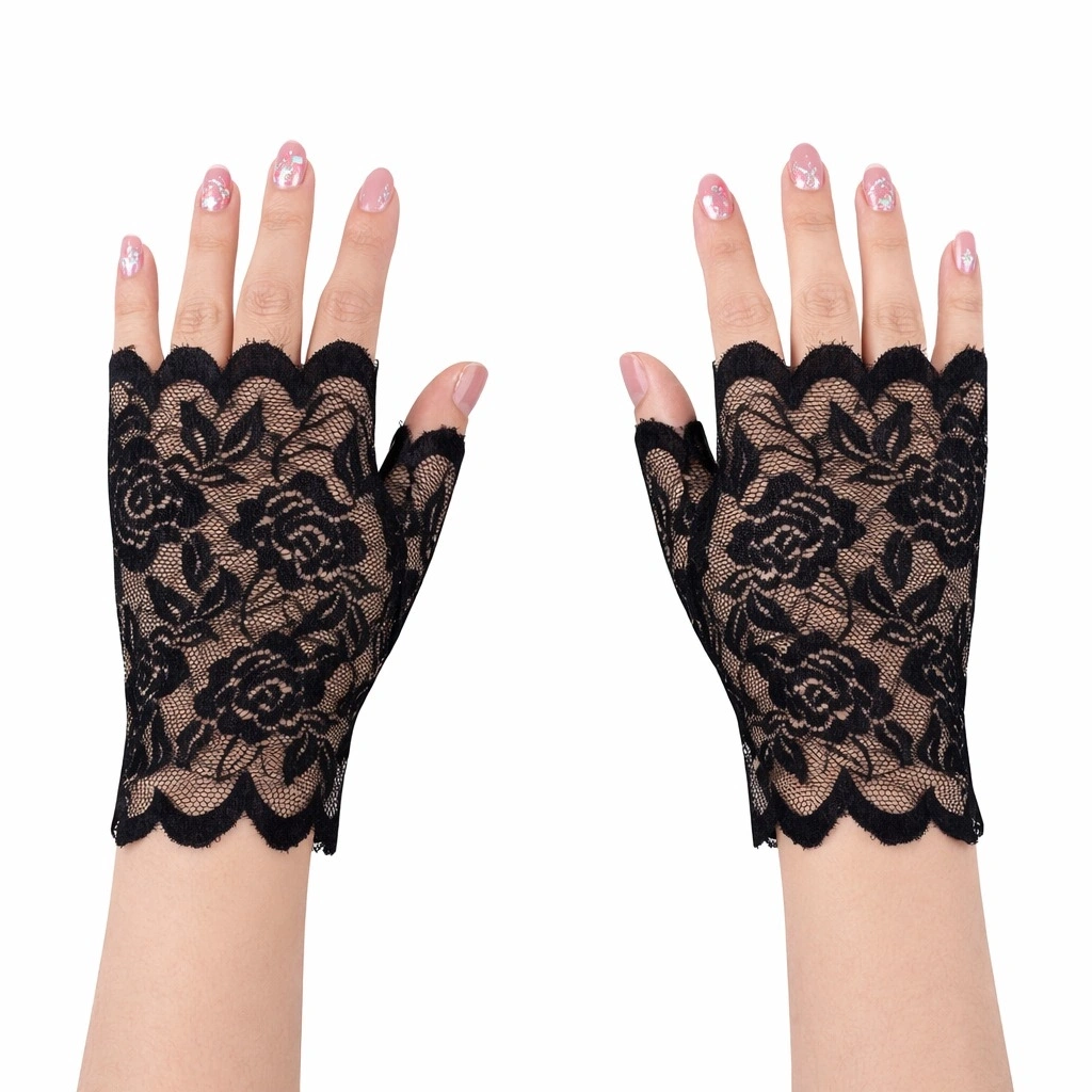 Zarif ve estetik tasarımıyla öne çıkan siyah gül desenli dantel eldiven, özel günler, kostüm kombinleri ve eğlence organizasyonları için ideal bir aksesuardır. İnce dantel dokusu ve gül desenli tasarımı ürüne şık bir görünüm kazandırır.