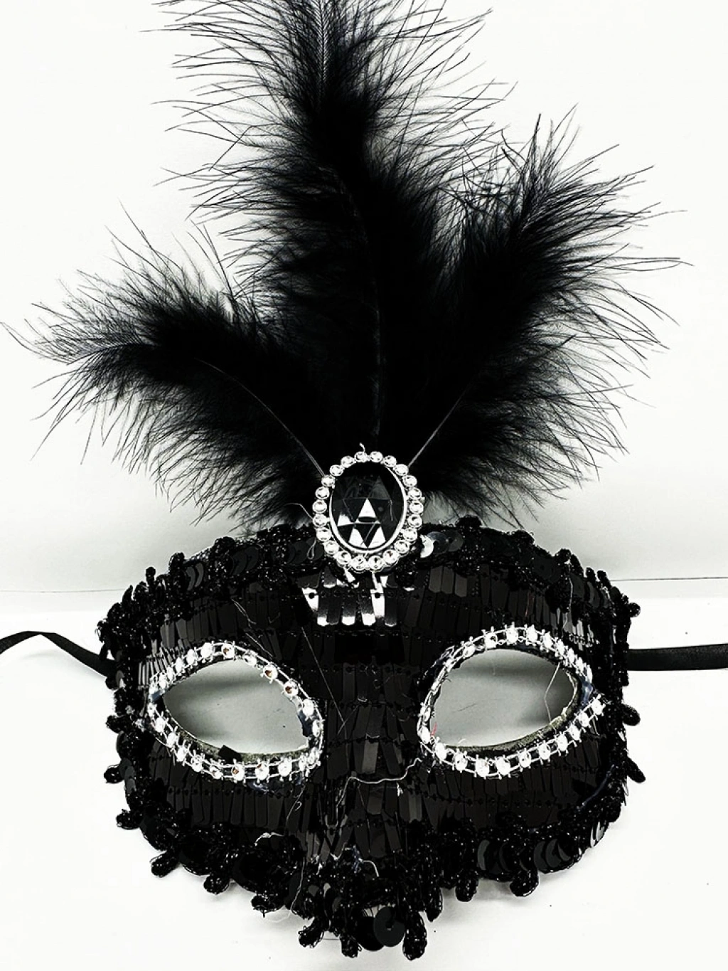 Siyah Renk Payetli Pullu Tüylü Parti Maskesi Ürün Ölçüsü : 17x20 cm ( Tüy Dahil ) Kaliteli plastik malzemeden üretilmiştir Maske üzeri parlak payetli pullarla kaplıdır İp aparatı sayesinde yüze göre uyum sağlar ve yüzden düşmez