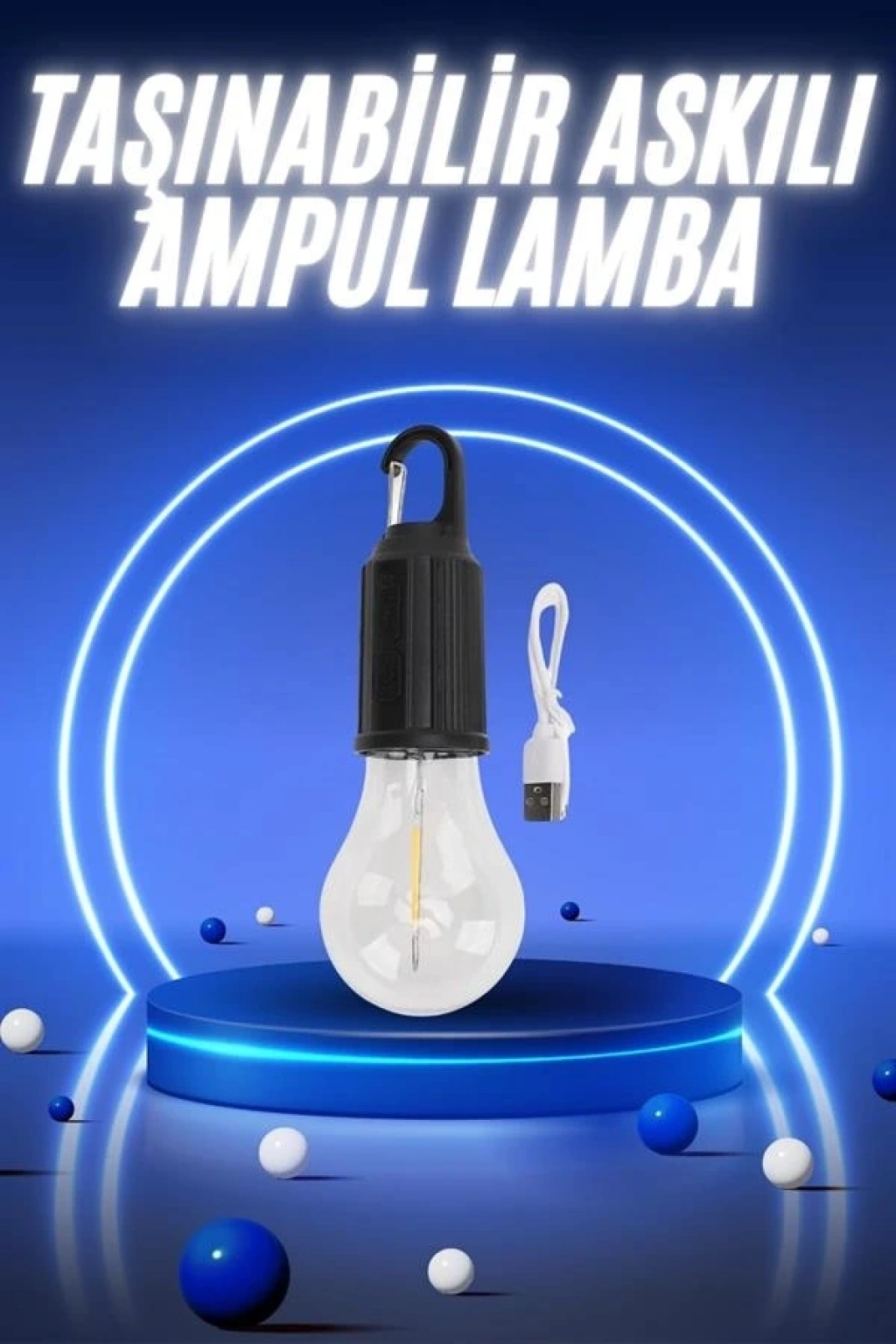 Taşınabilir Şarjlı Led Ampul Askılı Lamba Kamp Bahçe Lambası