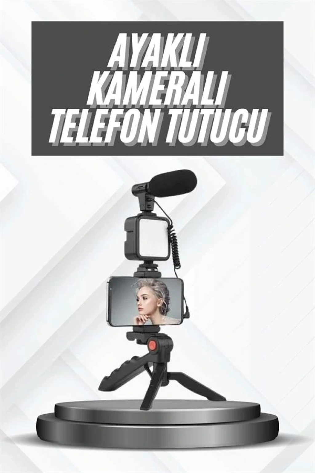 Telefon Tutucu Mini Mikrofonlu Tripod Vlog Çekim Video