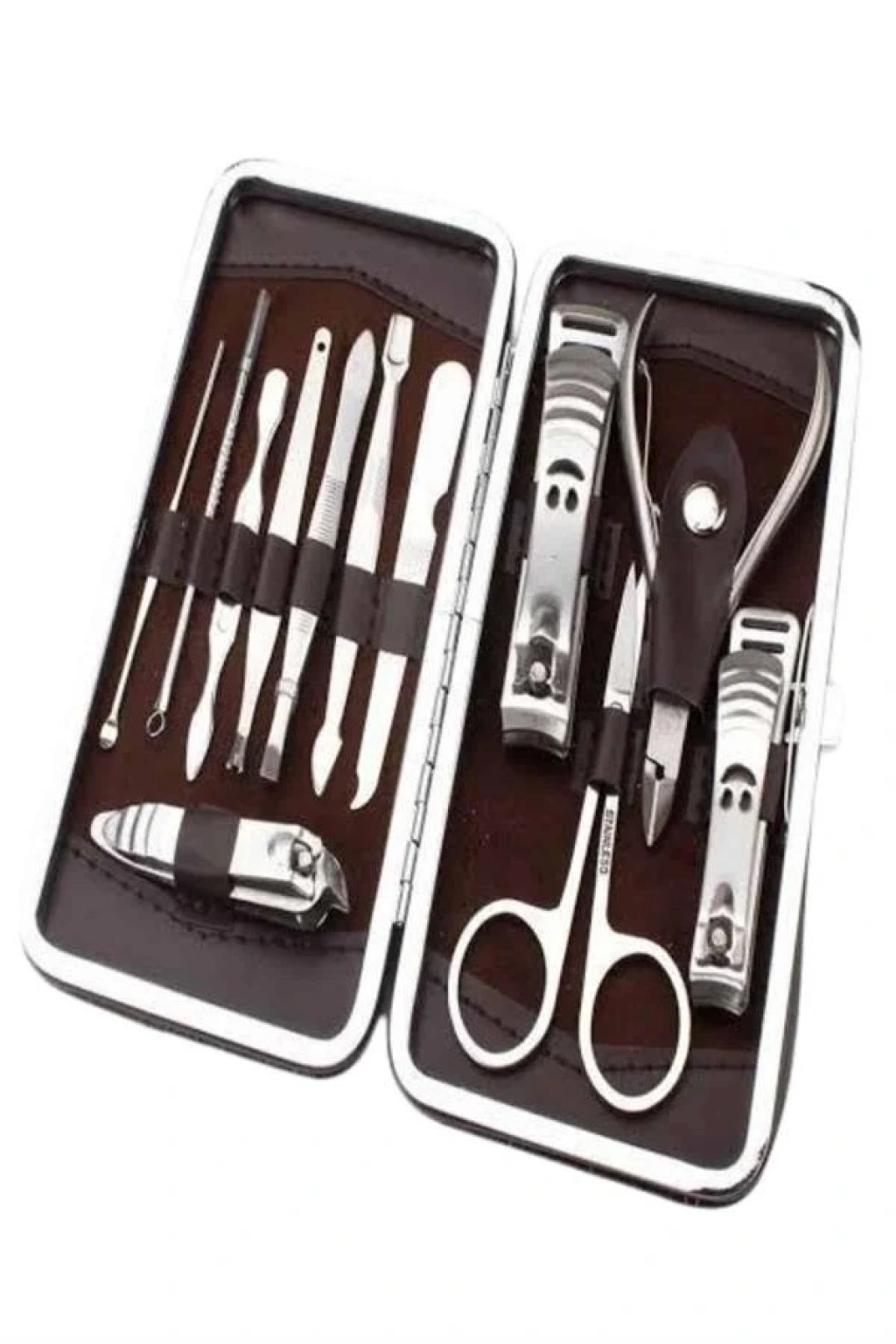 Özel Deri Çantalı 12 Parça Manikür Pedikür Bakım Seti Paslanmaz Çelik