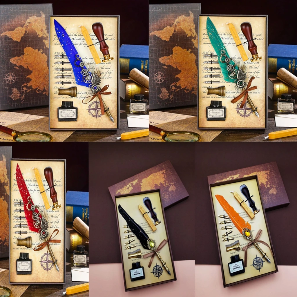 Tüylü Mürrekepli Divit Kalem Seti Özel Kutusu Ve Tasarımı Ile Göz Kamaştıracak.