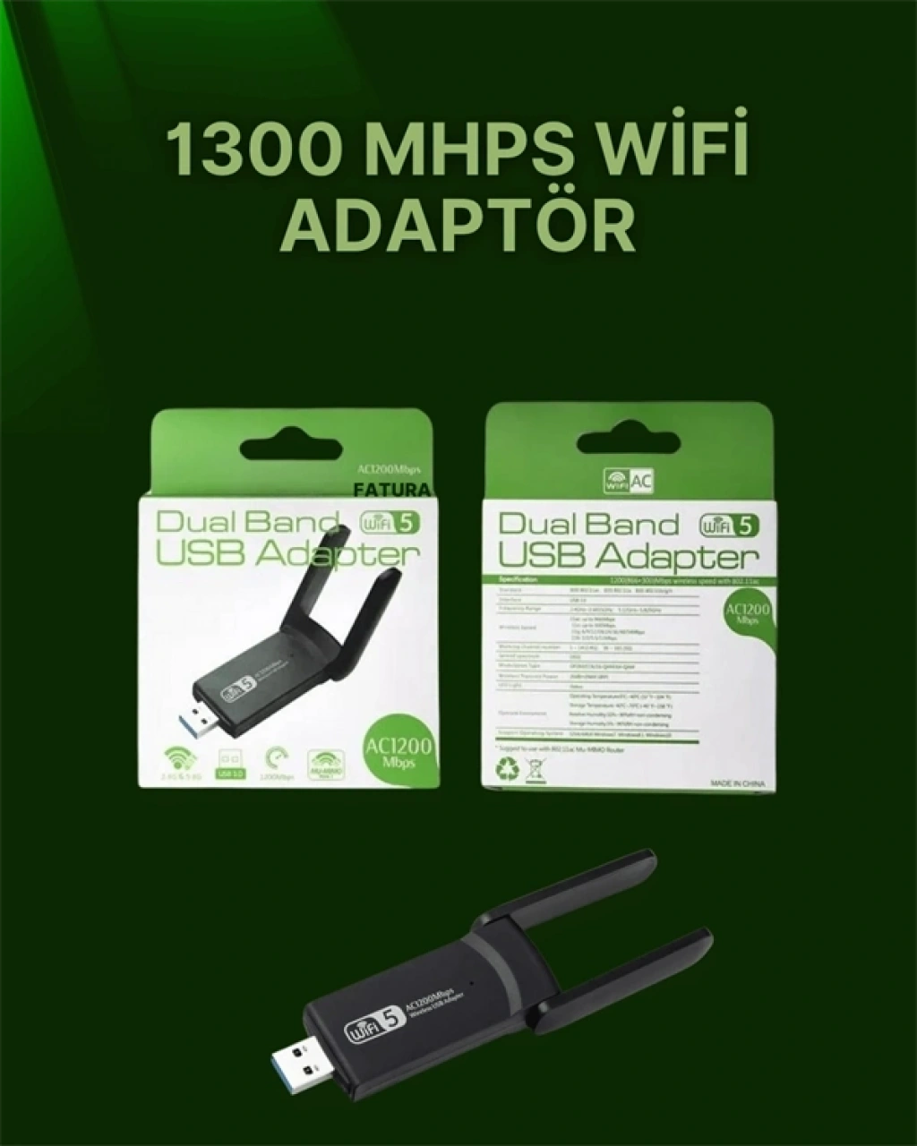 USB 3.0 Wireless Adaptör – 2.4GHz & 5GHz Destekli