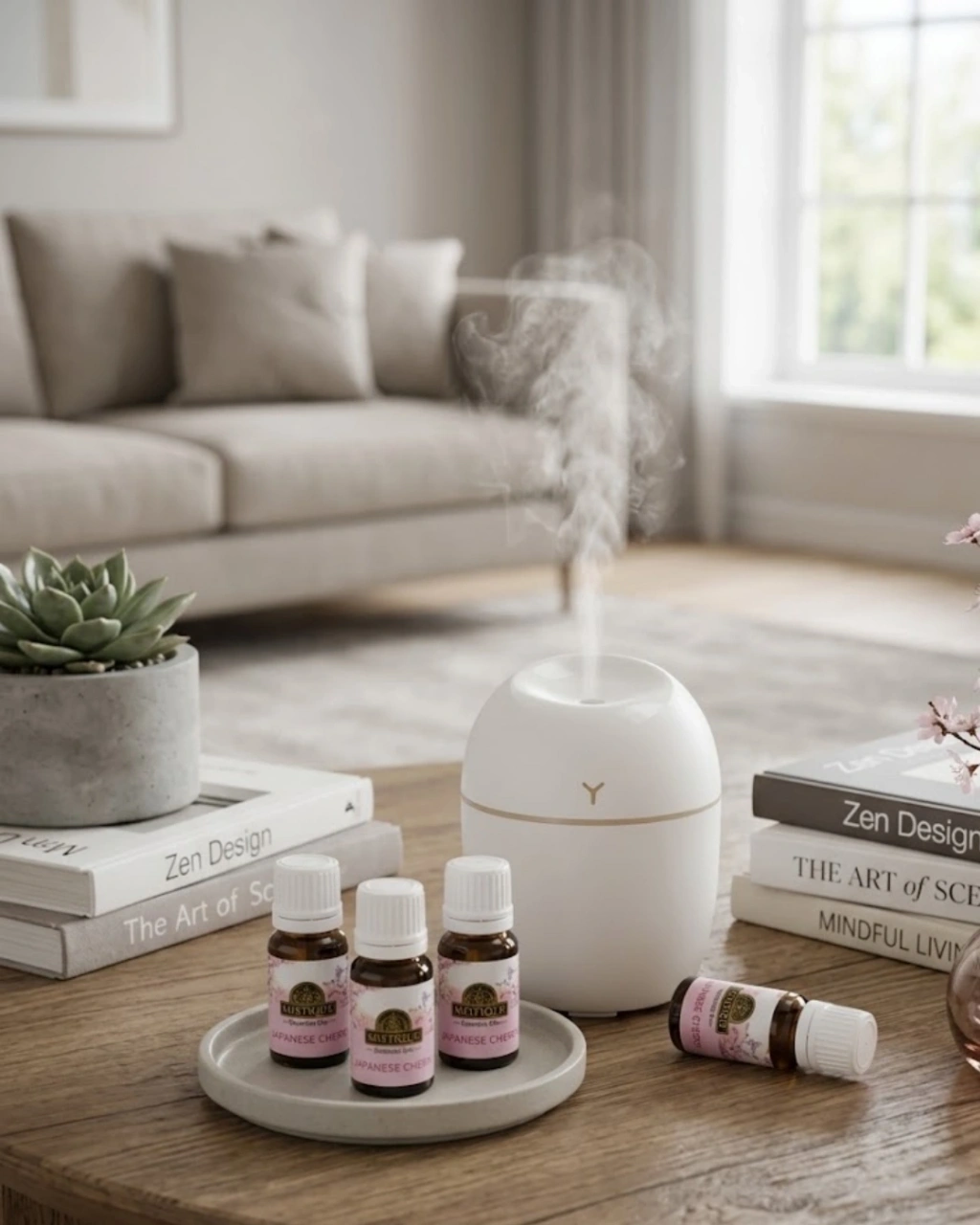 Aromaterapi Hava Nemlendirici USB Çalışan Sessiz LED Işıklı Cihaz 5 Esans Hediyeli