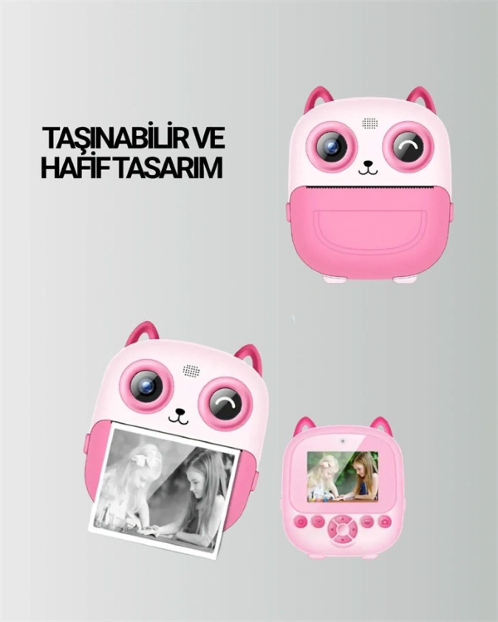 Mini Çocuk Fotoğraf Makinesi Baskı Özellikli Video Çekim 4 Kağıt Rulo Hediyeli
