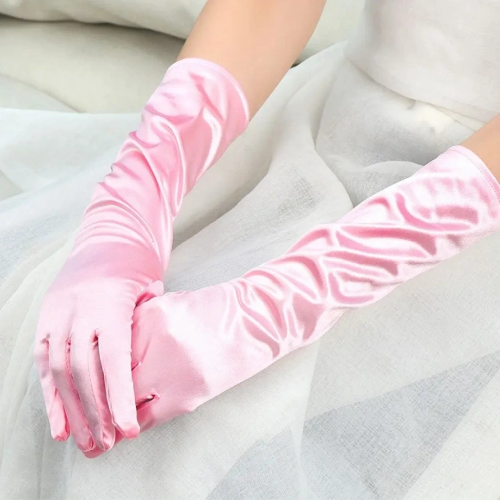 Uzun Boy Ekstra Parlak Saten Eldiven Pembe Renk (5047)
