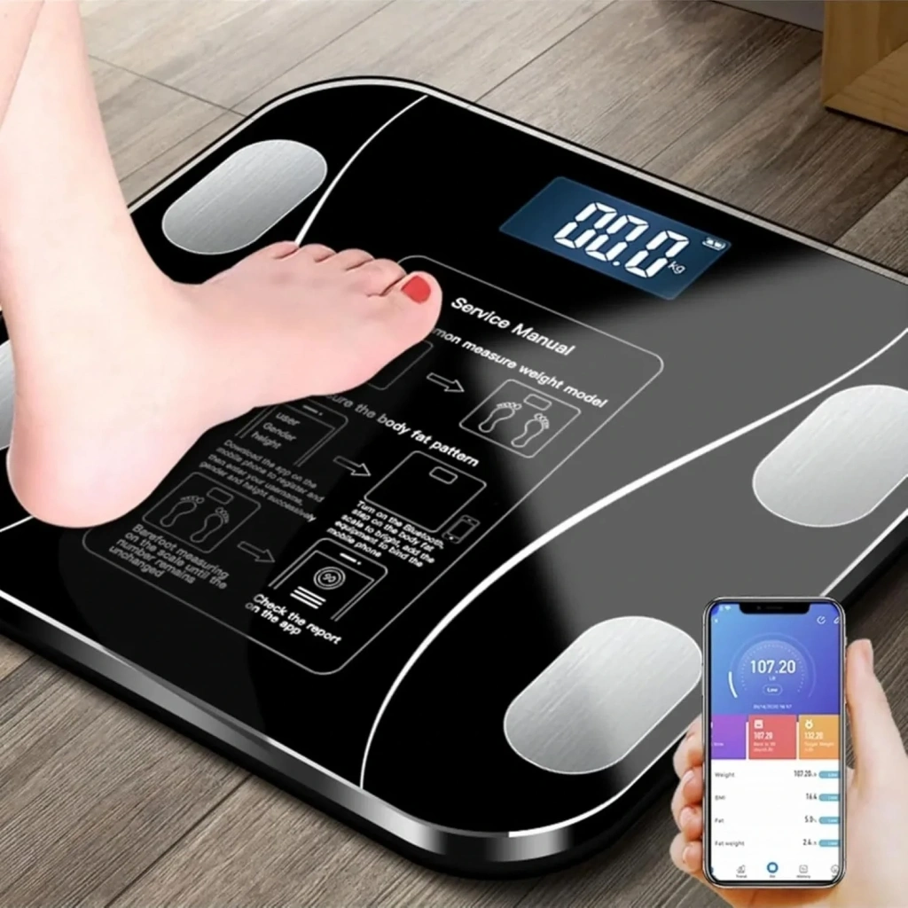 Yağ Ölçer Fonksiyonlu Dijital Baskül Elektronik Tartı Akıllı Bluetooth Lcd Dijital Ekran Ev Vücut (5047)