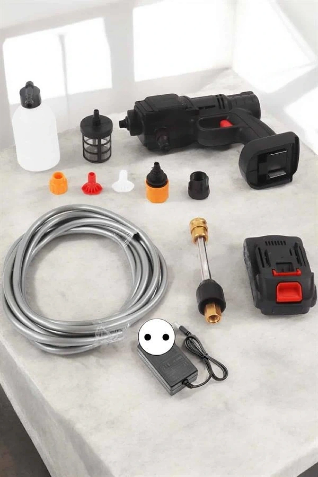 Taşınabilir Basınçlı Yıkama Makinesi – 5m Hortumlu, Köpük Şişeli, 48V Güçlü