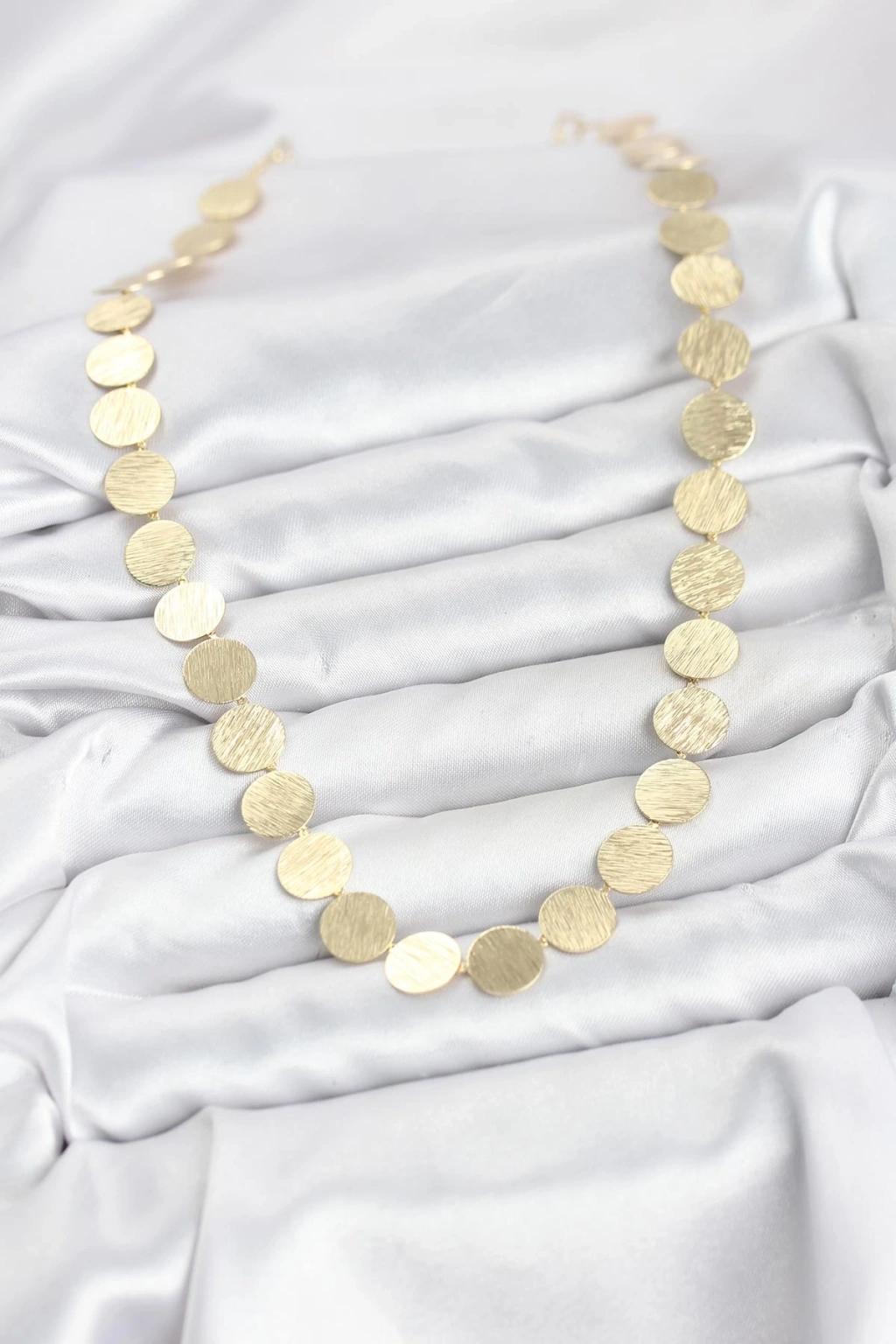 Yuvarlak Plaka Model Gold Renk Kadın Kolye